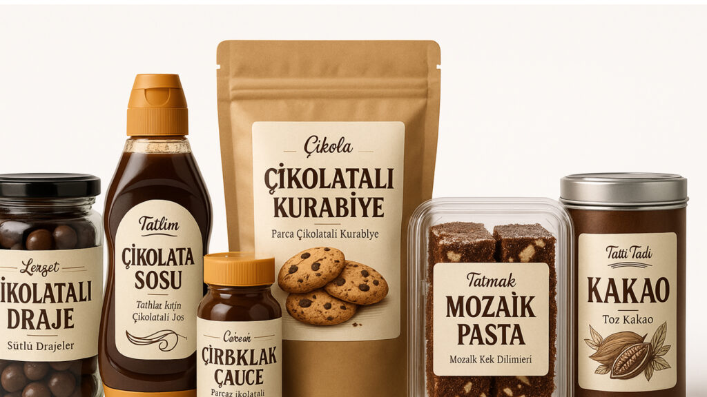 Renkli ve göz alıcı tasarımlar, tatlı ürünlerinin raflarda öne çıkmasını sağlar. Ayrıca, etiketlerde kullanılan yaldızlı baskılar ve parlak renkler, ürünlerin kaliteli ve lüks bir izlenim bırakmasına katkıda bulunur.